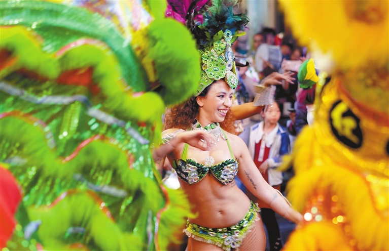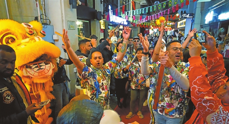 Liu Yangyang 524652046@qq.com A VIBRANT parade, specially choreographed to meld Brazilian samba with the Chinese lion dance, brought life to Shuiwei’s Cultural Block 1368 in Shenzhen’s Futian District on Saturday night. The event was hosted by Brass House, a Brazilian-Dutch bar that has become a staple in the area over several years. The parade brought the infectious joyfulness and fervent passion of a Brazilian carnival to the local community, offering Shenzhen residents a taste of the exotic. Commencing at 8 p.m., the celebration boasted a percussion band with both children and adults, alongside three samba performers and a lion dance team that weaved through the block’s narrow alleys. At various bars and bistros, they paused to perform, attracting onlookers who eagerly took photos and joined in the festive procession. The carnival, a brainchild of Brass House, first came to fruition in 2019. “One of our partners is from Brazil so we want to bring the Brazilian culture to China and share how the Brazilian people enjoy the carnival,” said Emmanuel Avemegan, known as Manu, co-partner of the bar, in a conversation with Shenzhen Daily before the festivities kicked off. “It’s a fusion of Chinese and Brazilian cultures because we also invited a lion dance troupe to perform together. So the event is not limited to Brazilians; it’s for everyone who wants to enjoy the cultures,” Manu added. Samba, a dance that originated from the synergy of African rhythms and Brazilian tunes, has swept from the animated streets of Rio de Janeiro to the worldwide spotlight, embodying joy, resistance, and the spirit of festivity. At its essence, Samba is more than a musical style; it is an exuberant celebration of existence. With its irresistible rhythms, entrancing steps, and profound cultural significance, Samba narrates tales of affection, strife, and exultation. A symbol of endurance, it has risen to the status of a cherished emblem, honored across every stratum of Brazilian society. The included pictures capture scenes of the parade, taken by Shenzhen Daily photographer Liu Xudong. |