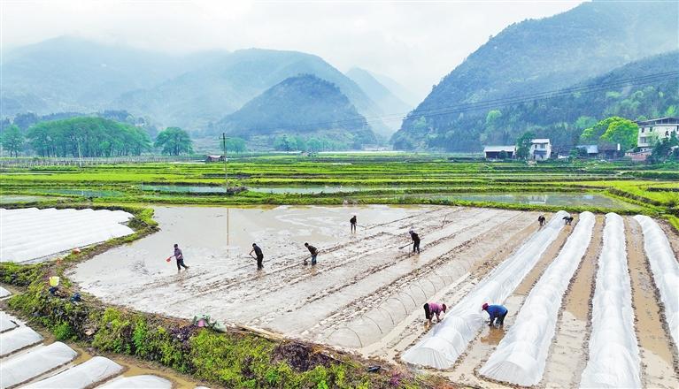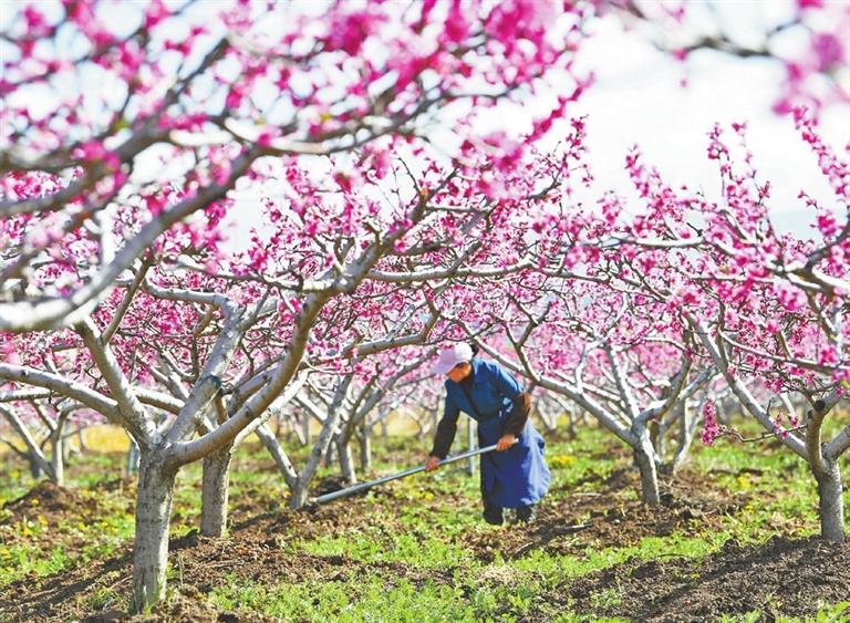 A farmer is working in the fields next to blooming rape flowers in Zaozhuang, Shandong Province.
