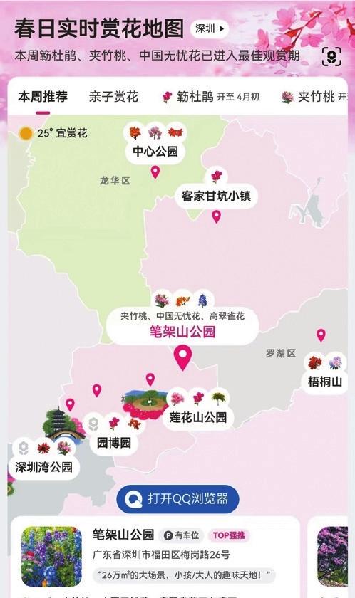 The feature now encompasses 20 popular cities nationwide, showcasing 30 representative flower species, and is anticipated to encompass over 800 flower viewing locations. Furthermore, QQ Browser has collaborated with Shenzhen’s cultural and tourism Offical WeChat account “i游深圳” (ID: itravelshenzhen), offering fresh, comprehensive, and authoritative travel information tailored for flower enthusiasts in Shenzhen.