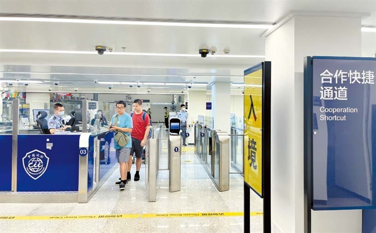 Passengers pass through the fast track at the Hengqin Port. On March 1, the Guangdong-Macao In-depth Cooperation Zone in Hengqin implemented a new segregated management policy for goods and personnel, featuring streamlined “first-line” and controlled “second-line” management. After 100 days, the policy has been implemented smoothly, and its benefits are becoming increasingly apparent. Xinhua