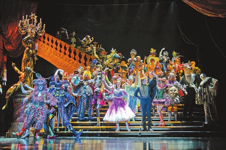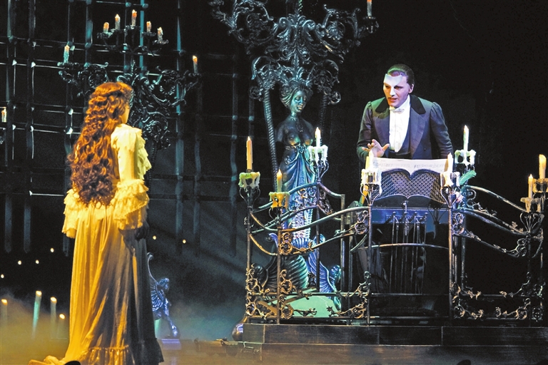 To recreate the splendor of a 19-century Paris opera house, the theater stage has been refitted to house customized props, including a 1-ton and 3-meter-wide chandelier crafted using 6,000 beads, which takes five people four weeks to assemble.