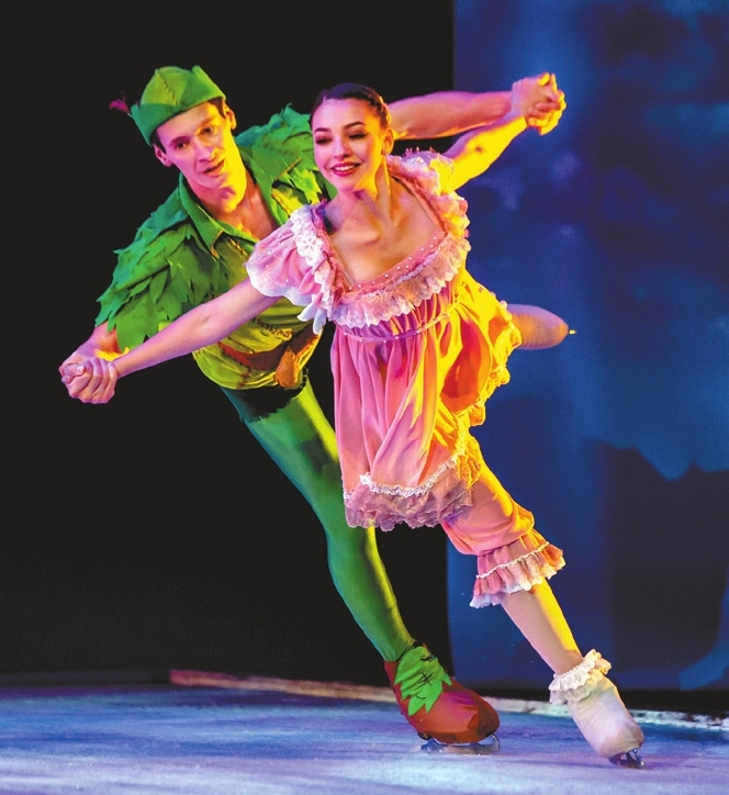 “Peter Pan on Ice” follows the fairy tale by British author James Matthew Barrie. Intrigued by Peter Pan, a magical boy who can fly, the three children of the Darling family learn to fly and one night they fly away from their home for “Neverland.” A series of adventures ensue.