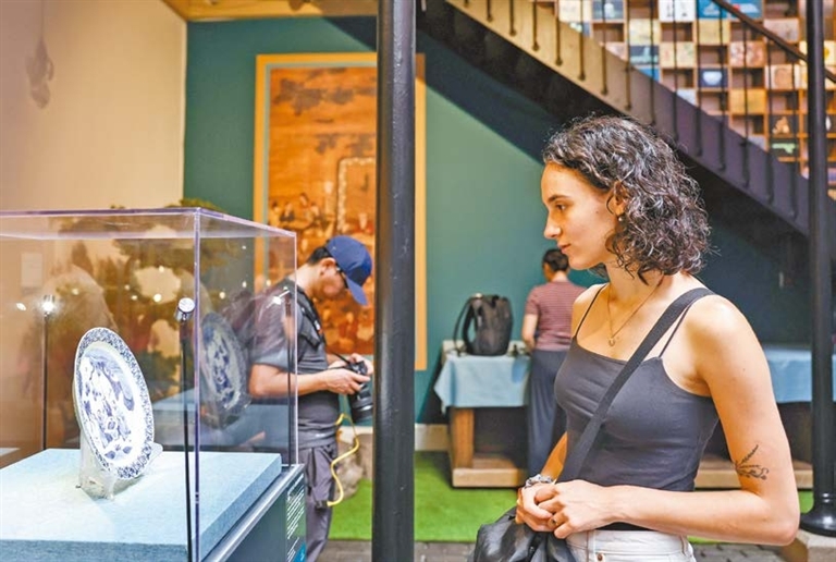 A visitor views an exhibit at the Vigor and Sportsmanship Chinese Sports Culture Exhibition ahead of the Paris 2024 Olympic Games in Paris, France, on Tuesday. Covering an area of over 700 square meters, the exhibition kicked off Tuesday with a total of 139 pieces (sets) of exhibits on display.Xinhua |