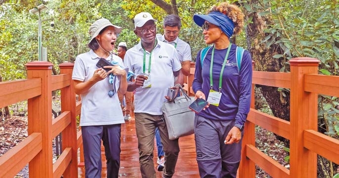 Windy Shao windysjf@hotmail.com OFFICIALS and experts from 21 countries gathered at the Baguang Heritiera Wetland Park on Monday for a collaborative discussion on the sustainable management of mangrove ecosystems. The visit was part of the International Mangrove Center’s workshop in Shenzhen focusing on mangrove conservation and restoration efforts. Among the topics discussed were the Chinese mangrove conservation and restoration action plan, insights on mangrove ecosystems and restoration techniques, the impact of technological advancements on sustainable mangrove restoration, and strategies for monitoring and evaluating mangrove ecosystems. Veronica Argelis Gonzalez Quintero, a delegate from Panama’s Ministry of Environment, expressed admiration for the preservation efforts at Baguang. “I am very impressed about the infrastructure that you have built to preserve it. It’s something we need to improve in my country,” she told the Shenzhen Daily. She praised the balance between nature and infrastructure in Shenzhen, emphasizing the importance of learning from such practices for global environmental improvement. “I saw the Shenzhen City around, and it was like, wow, it’s a good balance between nature and all the human infrastructure. “Not even just for me, for Panama, for different countries, we really need to learn from you, how to improve in our countries,” she said. Maria Rebeca Pacheco De Ramos from Venezuela marveled at the beauty and significance of the wetland park, echoing the sentiment shared by many visitors. “We have similar areas like Baguang and we are also trying to make plans to protect them,” she said. Local volunteers from the Baguang Nature School briefed the guests about the park’s history, eco-education initiatives, and nature appreciation programs. The school, initiated in 2020, is one of the seven national nature schools in Shenzhen certified by the Ministry of Ecology and Environment. It has become a vital hub for environmental education and awareness. Through its innovative nature classes and community partnerships, the school has engaged over 10,000 participants in nature education events. Nestled in Dapeng New Area, Baguang Heritiera Wetland Park boasts a diverse array of mangrove ecosystems, with the distinction of hosting the most extensive looking-glass mangrove cluster in China and globally. By prioritizing ecological preservation and minimal interference with the site’s natural state, the park maintains the original landscape of ancient villages and forests, setting an example for sustainable environmental practices. |