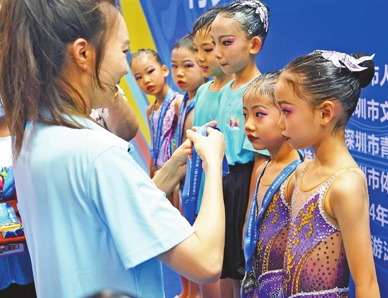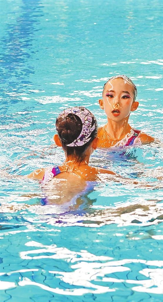 NEARLY 200 young athletes from 11 teams across Shenzhen participated in synchronized swimming matches, vying for 15 gold medals during the ongoing 11th City Games. The competitions concluded Monday, with Nanshan, Futian, and Yantian districts securing the top three positions in total scores. Bao’an and Yantian districts were lauded for their excellent sportsmanship exhibited throughout the matches. Contestants competed in five age groups, with the youngest being under 7 and the oldest under 15. Shenzhen’s synchronized twins, Wang Liuyi and Wang Qianyi, are among six local athletes competing at the Paris Olympics. The duo, having clinched golds at last year’s Asian Games and previous world championships, serves as inspirations to a new generation of swimmers. Here, we provide readers with a glimpse into the young athletes’ glamorous moments in the arena and unveil their behind-the-scenes interactions through the lens of Shenzhen Daily photographer Lin Songtao. (SD News) |
