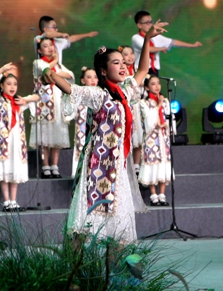A TOTAL of 27 youth choirs sang with their beautiful voices at the Shenzhen Media Building in Futian District on Aug. 2 as part of the “Aesthetic Education for All” Youth Ethnic Chorus Showcase event. More than 1,000 children from various regions in China, including Sichuan, Chongqing, Ningxia, Xinjiang, Inner Mongolia, and Yunnan, performed iconic folk songs and adapted pieces. The songs, which celebrate the diverse cultures of these areas, express the children’s love for their homeland and their aspirations for the future. Since its launch in April, the event has received enthusiastic responses from across the country. All 31 provinces, autonomous regions, and municipalities have contributed programs to the event. Zhao Cong, director of the China National Traditional Orchestra, noted that the event not only cultivates young people’s musical skills and aesthetic appreciation but also deepens their understanding of traditional Chinese culture. Future showcase events will be held in Changsha, Hunan Province; Xuanwei, Yunnan Province; and Ningbo, Zhejiang Province, focusing on opera and folk dance. Shenzhen Daily photographer Lin Songtao captured some exciting moments of the event. (Forest Lin) |