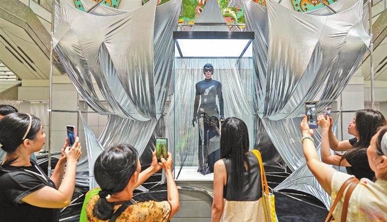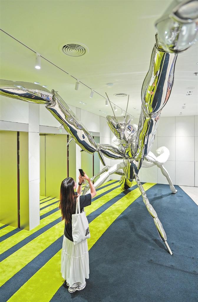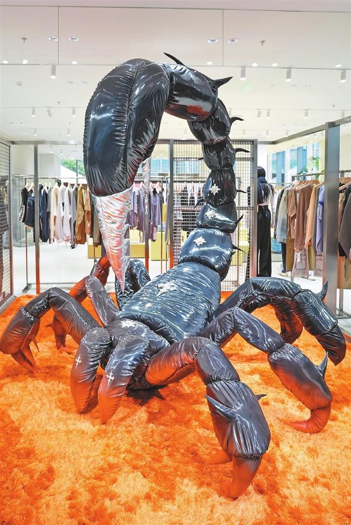 Wei Jie claudiamente@hotmail.com THE MixC World in Nanshan District buzzed with curious residents over the weekend, eager to check out the newly opened HAUS NOWHERE, which is famous globally for its futuristic retail space. Billed as the largest of its three locations worldwide, the 6,914-square-meter HAUS NOWHERE Shenzhen, which opened Thursday, promises an unparalleled shopping experience by blending art, exhibition, fashion and lifestyle with retail. Upon entering the HAUS, visitors are greeted by an iconic installation as tall as a skyscraper: the Colossal First Human with skin texture as realistic and intricate as a real person. The Shenzhen location weaves a fictional narrative centered around an insect kingdom, telling the story of a 10,000-year relationship between giants, insects and animals. Ascending the store’s staircase, shoppers are greeted by a giant mural depicting the insect kingdom, created by two artists from the Amsterdam-based creative team Freeling Waters. HAUS NOWHERE Shenzhen, Gentle Monster’s third project, features 18 fashion brands, including the popular Gentle Monster eyewear and fragrance label Tamburins, across three floors of retail space. |