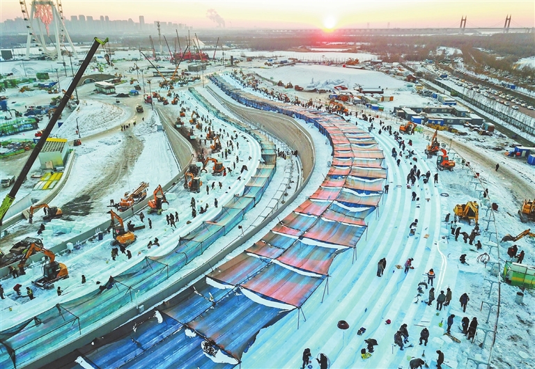 An aerial photo of the Harbin Ice and Snow World under construction, taken on Sunday, shows thousands of workers busy creating the highly anticipated annual ice and snow spectacle in Harbin, the capital of Heilongjiang Province. The venue is set to open to tourists in mid-December. As one of the world’s largest ice and snow theme parks, the Harbin Ice and Snow World is the main attraction of the Harbin Ice and Snow Festival. It features intricate ice and snow sculptures with varying themes each year. Xinhua |