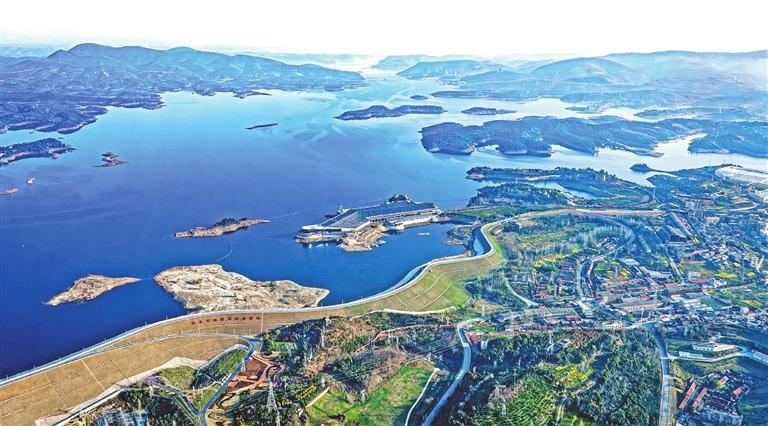 An aerial view of the Danjiangkou Reservoir in Hubei Province.