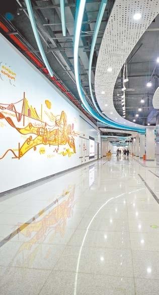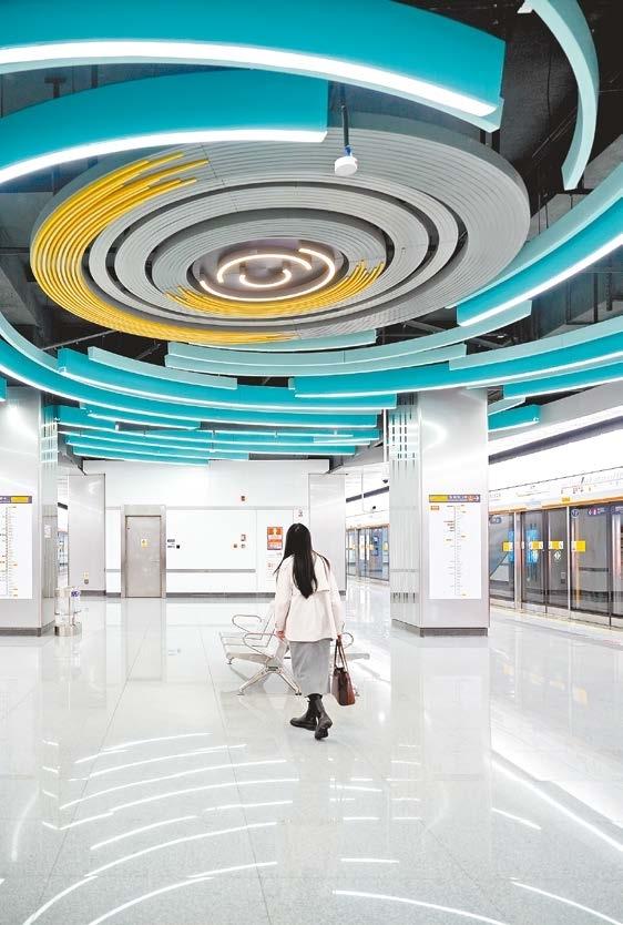 THE recently opened Line 13 of the Shenzhen Metro has made waves with its innovative design that blends technology and art, creating a distinctive new artistic tunnel experience. Among the highlights is the Shenzhen University Station, renowned for its eye-catching “super vortex” architecture, which offers a futuristic aesthetic reminiscent of time travel. The dynamic, flowing circular lines connect various areas within the station, while the interplay of light and shadow creates the illusion of moving star trails, evoking a sense of celestial wonder. Another standout feature at the station is the uniquely designed escalator, which appears to transport passengers through a space-time tunnel adorned with orange hues. Stepping onto it provides a thrilling sensation, akin to embarking on a journey at the speed of light. This design element has quickly become a favorite photo spot for visitors eager to capture their experience. The southern segment of Line 13, now operational, spans approximately 6.4 kilometers and includes seven stations. Once fully operational, the line promises to significantly reduce travel times, with a trip from Guangming to Nanshan potentially taking just 30 to 45 minutes. (Tang Li) |