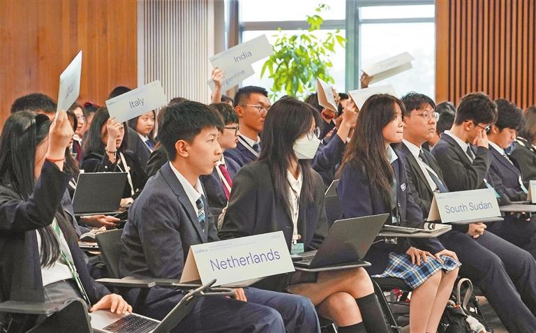 THE two-day 2025 Greater Bay Area International Model United Nations (GBAIMUN) concluded in Shenzhen yesterday under the theme “Building Regional Synergy and Advancing Global Sustainable Development.” Nearly 200 young delegates from over 50 leading universities, high schools, and Model United Nations (MUN) organizations across China came together to simulate multilateral diplomacy. Participants engaged in in-depth discussions on critical global issues, including artificial intelligence, regional peace mechanisms, and other pressing challenges, offering youth-driven perspectives and innovative solutions. Shenzhen Daily photographers Lin Songtao and Liu Xudong have captured highlights of the event.(Liu Yangyang) |