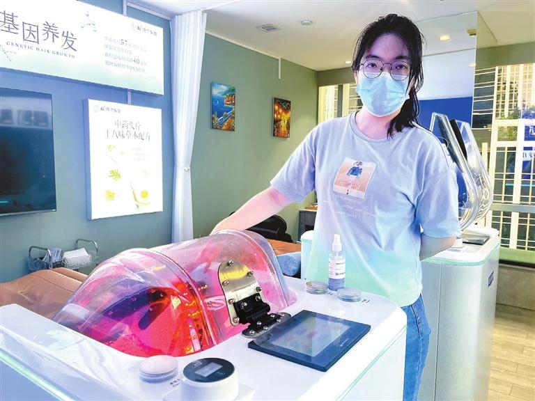 Wei Jie claudiamente@hotmail.com IT was 12:30 p.m. on a Friday, and the elevators in office buildings in the Futian central business district (CBD) were crowded with people on their lunch breaks, as usual. Unlike a typical weekday when she would dine out, 28-year-old Liu Linwei headed straight to the Jinzhonghuan Business Center, located just south of the Greater China International Exchange Plaza on Jintian Road, where her company is based. Her newly discovered “secret lunch break base” is on the ninth floor of the Jinzhonghuan building. The moment she laid down on an automated hair-washing machine, two robotic arms started massaging her scalp with water at varying intensities, which she could adjust to her comfort. Shortly afterward, she received a scalp test report on her mobile phone. “It feels just as comfortable as having my hair washed manually at a traditional salon, yet it saves a lot of time,” said Liu. Emergence of AI hair-washing stores This scene has been staged at various locations throughout Shenzhen, particularly in Futian, Nanshan, Luohu, Longhua, and Bao’an districts, since last year. According to Chinese-language media reports from mid-April, the city currently has more than 500 such AI-powered hair-washing stores, with the highest daily average customer count reaching 62. The AI-powered hair-washing store that Liu frequents opened in September 2024 and features two such machines. The store averages about 50 customers per day, said the store manager, who identified himself only by his family name Zhang. According to Zhang, store staff will conduct a professional scalp health test with equipment for each customer prior to the hair wash. Based on the test results, the AI-powered machine automatically selects the appropriate treatment mode — dry or oily scalp — for each customer. The hair-washing device is disinfected after each use, and disposable towels and earplugs are provided, said Zhang, adding that those interested should make a reservation through the store’s WeChat mini-program to secure their preferred half-hour service time slot before visiting. Efficient and affordable After customers lie down on the specially designed machine, which is equipped with massage functions, and choose the washing mode according to the length of their hair, they are asked about their preferred water temperature and washing intensity. The automated hair-washing machine offers three levels of intensity: low, medium, and high. During the hair wash, water jets clean the hair by varying the position and water flow while automatically dispensing shampoo and conditioner. The entire treatment process includes two shampoo cycles, one conditioning cycle, and a final rinse. In addition, the machine features a red light therapy function. The standard process for the long hair mode takes about 15 minutes. After washing, customers can dry their hair using the available options. Currently, the AI hair-washing service costs about 19 yuan (US$2.60) per session, with some online service platforms offering discounts as low as 9.9 yuan. After the machine wash, Liu said that the wash felt “very clean” and the water intensity was stronger than traditional washing methods. “I can feel the water flow mimicking a person massaging. I will definitely come back regularly.” Zhang explained that because the machine uses a direct water flow, the water pressure during washing is stronger than that of traditional manual washing. “That’s precisely why the machine is able to provide a deep cleaning of the customer’s scalp,” he said. Shenzhen-made device The AI-powered hair-washing machine was developed by Shenzhen EAIN Technology Co. Ltd., a high-tech company based in Bao’an District that has focused on producing cloud-based, intelligent, health-related robotic machines since its founding in 2018. The machine features a dual robotic arm design equipped with more than 10 water nozzles to provide a personalized scalp cleansing experience. Users can easily customize key settings such as hair length and washing intensity through a touchscreen interface. After a user lies down on the machine, the robotic arms take over to complete the washing, according to an introduction by Shenzhen EAIN. Infrared sensors adjust the water spray angle in real time to improve coverage and comfort. Hygiene and safety are top concerns for consumers. To address these issues, the developer has incorporated a dual-mode sterilization system that combines ultraviolet light and high-temperature treatment. A sterilization cycle takes just two minutes, ensuring that the device remains sanitary between uses. Wu Wenying, marketing director of EAIN, pointing out a standout feature of the next-generation device, said that its real-time monitoring system employs 128 sensor groups to track the scalp’s micro-environment. This data feeds into a cloud-based algorithm paired with a super-pressurized water circulation system, aiming to enhance washing effectiveness. The AI-powered hair-washing machines have experienced rapid expansion beyond Shenzhen, appearing in other cities like Guangzhou, Guangdong Province, and Fuzhou in Fujian Province. They are typically found in hair care and scalp treatment salons or beauty and body care centers. Some can be found in independently operated pop-up experience shops. Reshaping hairdressing industry? This novel hair-washing experience has attracted a large number of young consumers. Chen Hao, store manager of an AI hair-washing experience store in Bao’an District, said data from his store shows that 79% of consumers are between 20 and 35 years old. Will this emerging smart device reshape the traditional hairdressing industry? A traditional hair salon in Shenzhen Hi-Tech Industrial Park, Nanshan District, reported a significant reduction in labor costs after introducing an AI-empowered washing machine. The store manager, who preferred to remain anonymous, said that his hair care team w