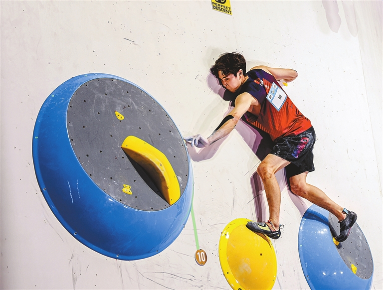 ? China’s Pan Yufei, a native of Guangzhou, competes in the men’s Boulder final at the International Federation of Sport Climbing (IFSC) World Cup in Bern, Switzerland, on Sunday local time. The 25-year-old became the first Chinese athlete to win a Boulder World Cup medal, defeating France’s Mejdi Schalck by 0.1 points. Pan finished 12th at the 2024 Paris Olympic Games, but did not qualify for the final of the men’s combined event, which included both Boulder and Lead climbing.Xinhua |