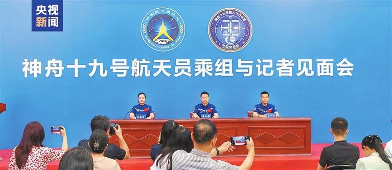 (From left) Wang Haoze, Cai Xuzhe, and Song Lingdong, the three crew members of Shenzhou-19, met the press at Beijing Aerospace City yesterday — about 60 days after their return to Earth. The three, all in good health, shared their experiences and reflections on their 183-day stay in space. Medical exams confirmed that their muscle strength, endurance, and cardiopulmonary function during exercise have largely returned to pre-flight levels. They will resume training shortly. CCTV |