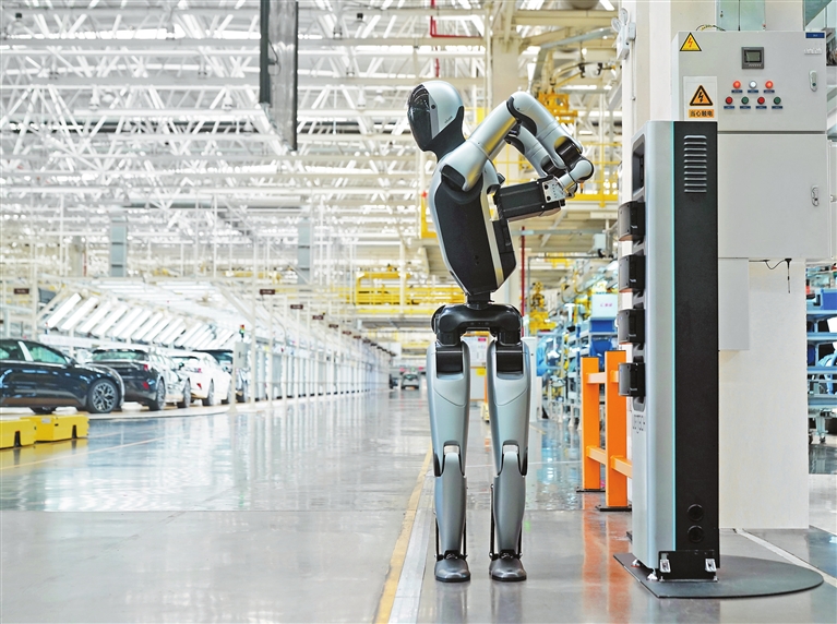 UBTECH’S Walker S2 humanoid robot swaps its own battery in this photo released Thursday. On the same day, the Shenzhen-based company announced that it had achieved the world’s first hot-swap, fully autonomous battery-replacement system for humanoid robots. Without needing to power down, Walker S2 can swap a depleted battery for a charged one in just three minutes, allowing the robot to operate 24/7. The new tech will slash downtime and maintenance costs. Courtesy of UBTECH |