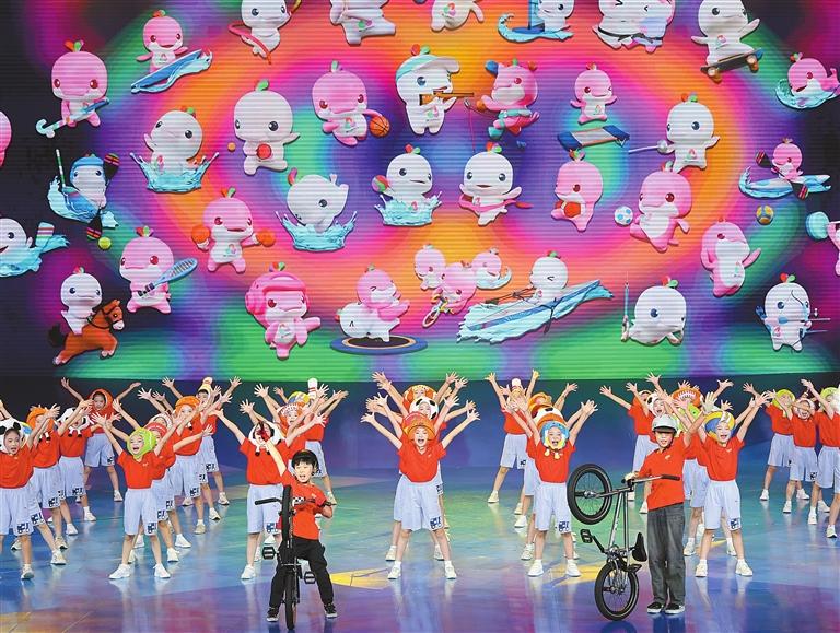Children perform at the 100-day countdown ceremony for the 15th National Games and 12th National Paralympic Games, along with the 9th National Special Olympic Games, which was held in Shenzhen on Saturday evening. The backdrop featured the mascots of the 15th National Games and the Paralympic Games. It will mark the first time that Guangdong, Hong Kong, and Macao jointly host the nation’s largest and highest-level sporting event since its inception in 1959. P3 > Xinhua |