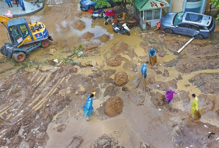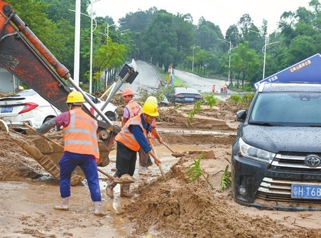 HEAVY rains have battered Guangdong Province for days, triggering widespread flooding and a serious landslide in Guangzhou. Cities including Guangzhou, Dongguan, Huizhou, and Shanwei are among the hardest hit. Two people were killed and seven were injured in the rain-induced landslide at the Huangzhuang area of Baiyun District in Guangzhou on Wednesday. Five are still missing as of Thursday. In response to the disaster, China’s top economic planner allocated 100 million yuan (US$14 million) to support emergency recovery. A Level-IV national emergency response has been activated. (SD Xinhua) |
