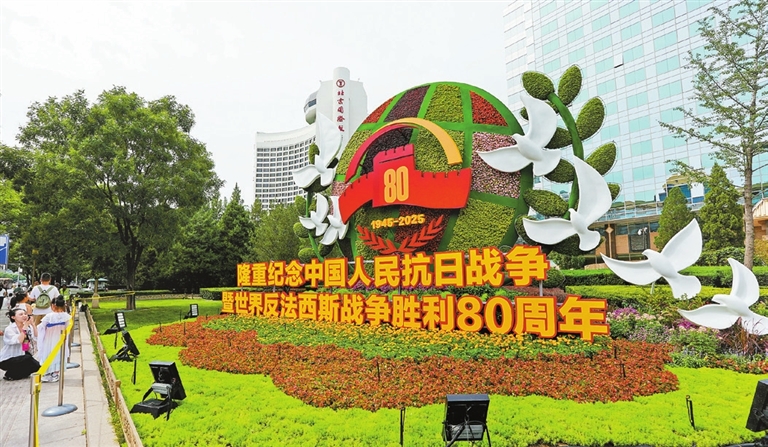WITH the 80th anniversary of the victory in the Chinese People’s War of Resistance Against Japanese Aggression and the World Anti-Fascist War approaching on Sept. 3, preparations for the commemorative activities in Beijing are entering their final phase. From intense military parade rehearsals on the outskirts of Beijing to elaborate floral displays lining Chang’an Avenue and media tours drawing nearly 200 international and domestic journalists, the capital is abuzz with activity. Twenty-six foreign leaders, including Russian President Vladimir Putin and DPRK top leader Kim Jong-un, are set to attend the events. (Song Yingwen) |