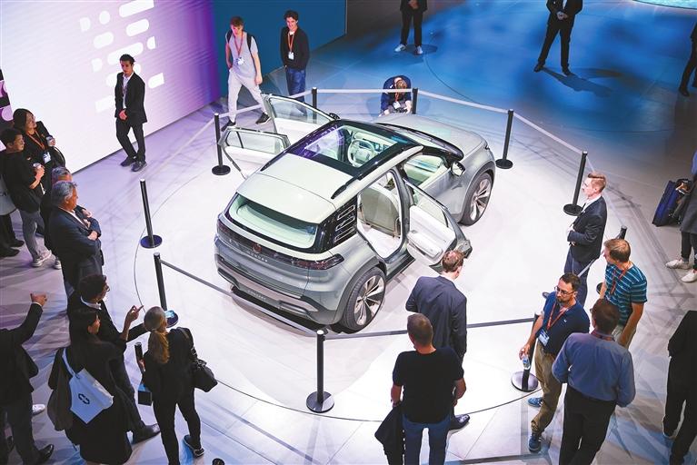 Visitors look closely at a Volkswagen ID.Cross concept car Tuesday at the IAA Mobility conference, a major car show in Munich, Germany. The auto show has drawn some 750 leading automakers and tech innovators from around the globe, with Chinese brands including BYD, GAC, Leapmotor, and Xpeng participating. Xinhua |