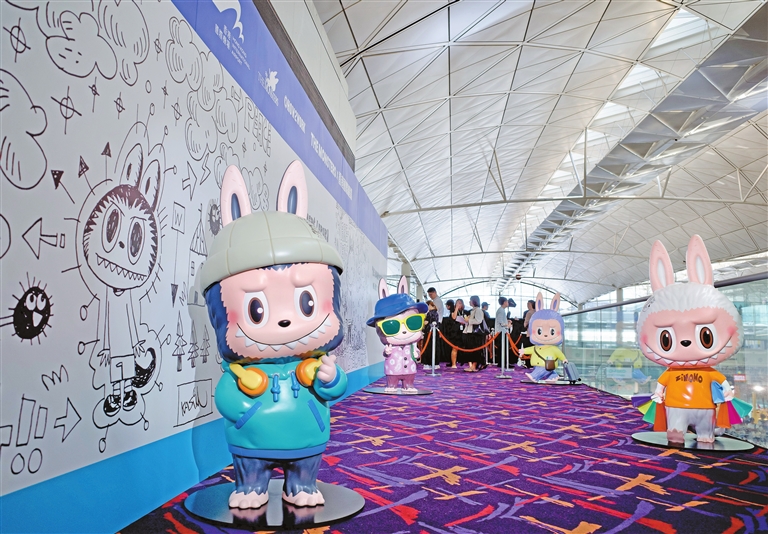Labubu installations are unveiled in the Departure Hall of the Hong Kong International Airport, which yesterday launched “THE MONSTERS × Hong Kong International Airport” in collaboration with creator of the series Kasing Lung. In celebration of the 10th anniversary of the globally beloved “THE MONSTERS” series, the collaboration marks the beginning of its world tour with the airport as the first stop. Among the highlights of the collaboration is the world’s largest KING MON installation, which stands 7 meters tall in the Departures Hall, alongside multiple photo spots featuring “THE MONSTERS” characters in the departure restricted area. Created by Hong Kong illustrator Kasing Lung, Labubu is part of “THE MONSTERS” series and has gained popularity across Asia for its distinctive appearance and mischievous personality. China News Service |