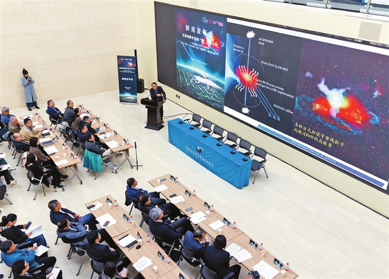 A JOINT team of Chinese and international scientists released the latest research results from China's Large High Altitude Air Shower Observatory (LHAASO) on Sunday. The findings shed new light on a decades-old mystery concerning the cosmic ray energy spectrum, which exhibits a sharp decline — known as the "knee" — above 3 peta-electronvolts (PeV). The origin of the "knee," first observed nearly 70 years ago, has long puzzled scientists. It has been hypothesized that this feature reflects the acceleration limit of cosmic ray sources and marks a transition between two power-law distributions in the energy spectrum. Two studies — published in National Science Review and Science Bulletin, respectively — reveal that micro-quasars powered by black hole accretion are potent particle accelerators within the Milky Way and are likely responsible for the "knee." These findings also enhance our understanding of the extreme physical mechanisms in black hole systems, according to the Institute of High Energy Physics at the Chinese Academy of Sciences (CAS). Black holes, among the most mysterious objects in the universe, produce jets approaching the speed of light as they accrete matter from companion stars in binary systems, forming micro-quasars. In this research, LHAASO systematically detected ultra-high-energy gamma rays from five such micro-quasars for the first time. The results indicate that the primary cosmic rays producing these gamma rays likely reach energies beyond 1 PeV and even 10 PeV — surpassing the energy threshold of the "knee." This resolves a long-standing challenge, as previously recognized cosmic ray sources such as supernova remnants could not exceed this limit, either observationally or theoretically. To further investigate this phenomenon, precise measurements of the energy spectra of various cosmic ray species and their respective "knee" regions are essential. However, due to the scarcity of cosmic rays in this energy range and interference from Earth’s atmosphere, distinguishing protons from other atomic nuclei has been extremely difficult— and was once considered nearly impossible. Leveraging LHAASO’s multiparameter measurement techniques, the research team obtained a large, high-purity proton sample with accuracy comparable to satellite-based experiments. This revealed an unexpected new structure in the energy spectrum, clearly indicating a previously unknown "high-energy component." Combined with low- and intermediate-energy components measured by space-borne experiments, LHAASO’s results demonstrate the presence of multiple cosmic ray accelerator populations in the Milky Way, each with distinct acceleration capabilities and energy ranges. The "knee" marks the upper acceleration limit of the sources generating the high-energy component. These two breakthroughs are mutually reinforcing, forming a coherent scientific narrative. They not only represent a major step toward solving the long-standing puzzle of the "knee," but also provide key observational evidence for understanding the role of black holes in cosmic ray origins. According to Cao Zhen, a CAS academician and chief scientist of LHAASO, the facility’s hybrid detector design enables the detection of cosmic ray sources via ultra-high-energy gamma rays, while also allowing precise measurement of cosmic ray particles near the solar system. For the first time, the "knee" structure has been observationally linked to a specific class of astrophysical source: black hole jet systems. Cao said that an estimated dozen or so such sources exist in our galaxy. Cao added that the acceleration mechanisms of some artificial particle accelerators resemble those of cosmic ray accelerators in space. Deeper understanding of these processes could inform the development of next-generation particle accelerators. Located at 4,410 meters above sea level on Mount Haizi in Daocheng, Sichuan Province, LHAASO is a ground-based cosmic ray observatory designed, built, and operated by Chinese scientists. It leads the world in high-energy cosmic ray research, thanks to its high sensitivity in both gamma-ray astronomy and cosmic ray spectroscopy, and has produced a series of influential discoveries — advancing humanity’s understanding of extreme physical processes in the universe.(SD-Agencies) |